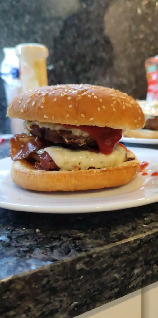 om 14uur hat ik gedaan en hebben ik lekkere hamburgers gemaakt.