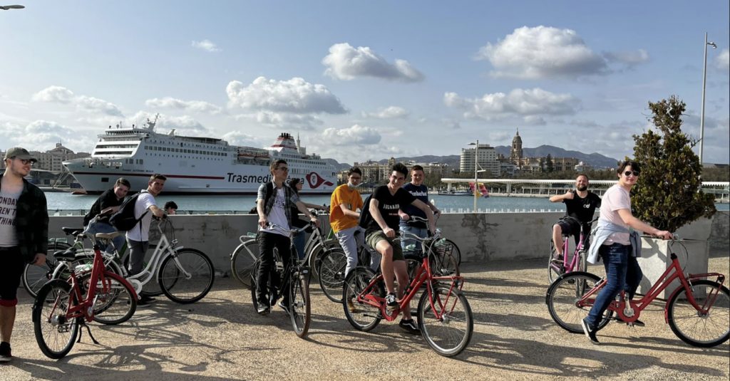 het is vandaag zaterdag en we hebben om 12:00 vertrokken naar Malaga om daar een toeristische fietstocht te doen. we vertrokken met de bus uit Torremolinos naar het bus station in Malaga. We hebben daar dan heel even wat vrij mogen rondlopen om te eten en zelf wat de stad te verkennen. Rond kwart voor 3 hebben we dan een fiets gehaald en de fietstocht begonnen met de gids. we hebben langs de geboorteplaats van Pablo Picasso, langs een onofficiële kunstwijk, een oude brouwerij, de nieuwe haven, een kleine pauze in het oud vissersdorp en de stierenarena waar twee keer per jaar een stierengevecht word gehouden. Daarna hebben we terug gereden naar de fietswinkel en we hebben terwijl we fietsten gepasseerd in een park waar er verschillende bomen van over de hele wereld daar worden geplaatst. het was net een klein regenwoud. Dan hebben we teruggekeerd met de bus naar Dimona suites.