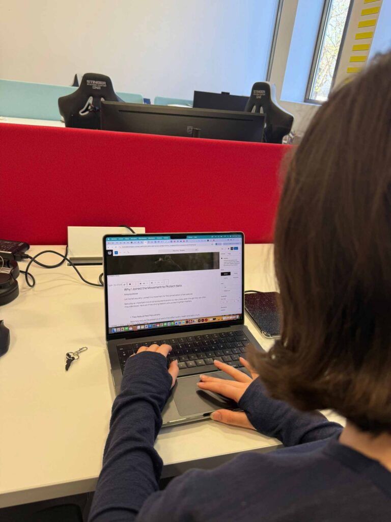 Vandaag hebben we doorgewerkt aan de WordPress-website voor Murciélagos Málaga. Na een productieve ochtend en een korte pauze hebben we de websitestructuur herzien om alle locaties overzichtelijk te houden. Tussen het bouwen door doken we de virtuele wereld in met de VR-game van het bedrijf en kregen we een toffe, 3D-geprinte vleermuis-sleutelhanger als aandenken. Na zes uur werken aan de website besloot Eirikke een burrito te kopen voor Amélie.