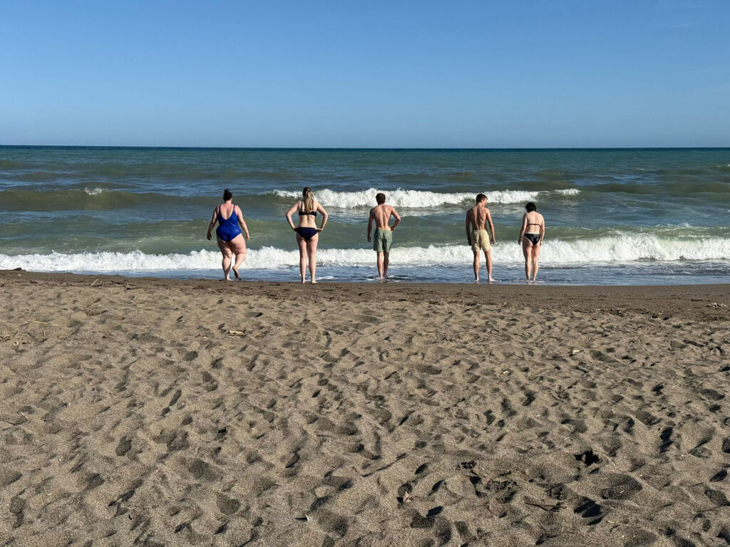 Na het werk zijn we naar onze kamers gegaan om even tot rust te komen na de werkdag. Na het rusten zijn we naar het strand gegaan. Je kunt natuurlijk niet naar het strand gaan zonder de zee in te gaan! De zee was redelijk wild, we zijn zelfs een paar keer kopje-ondergegaan. Daarna hebben we nog gevolleybald op het strand en na een uurtje zijn we teruggekeerd naar het hotel voor de briefing.