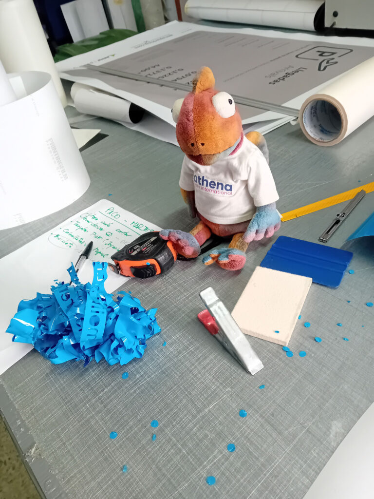 Toen ik uiteindelijk kon beginnen met werken, kreeg ik de taak om stickers uit te snijden. Hier was ik een paar uur mee bezig. Het was vrij precies werk, waarbij ik goed moest opletten dat alles netjes en correct werd uitgesneden. Aan het einde van mijn stagedag mocht ik ook nog iets leuks doen: ik kreeg de kans om mijn eigen werk‑T-shirt te maken. Dat was een fijne afsluiter van de dag, en het resultaat is goed gelukt.