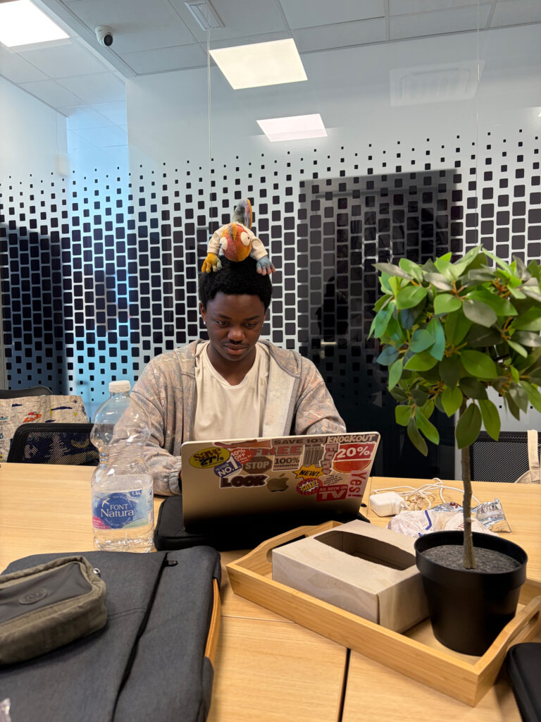 Op een bepaald moment kwam Pallas ook even kijken hoe we aan het werken waren. Pallas volgde mee wat we aan het doen waren en toonde interesse in ons werkproces.