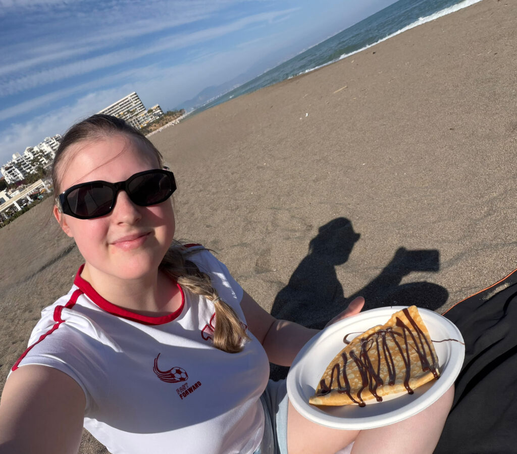 Onze stagedag liep tot 14u in de namiddag. Tegen dan hadden we al een hele werkvoormiddag achter de rug. Daarna vertrokken we opnieuw naar huis en splitsten onze wegen. Evelien besloot om nog even naar het strand te gaan om te ontspannen na de stagedag. Daar heeft ze genoten van het mooie weer. Nadien heeft ze zichzelf ook nog getrakteerd op een lekkere pannenkoek.